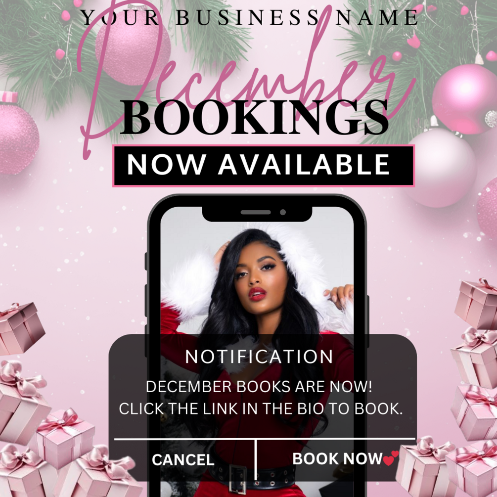 DIY Booking Flyer, December Appointments, Christmas Holiday, Hair, Lashes, Nails, Editable Canva Template
